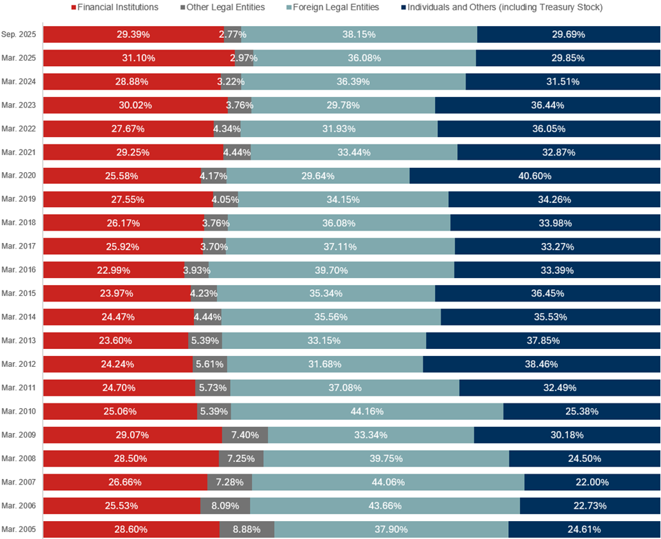 - The Company has 229,574 thousand shares of treasury stock as of September 30, 2025 which is not included in the major shareholders list above.